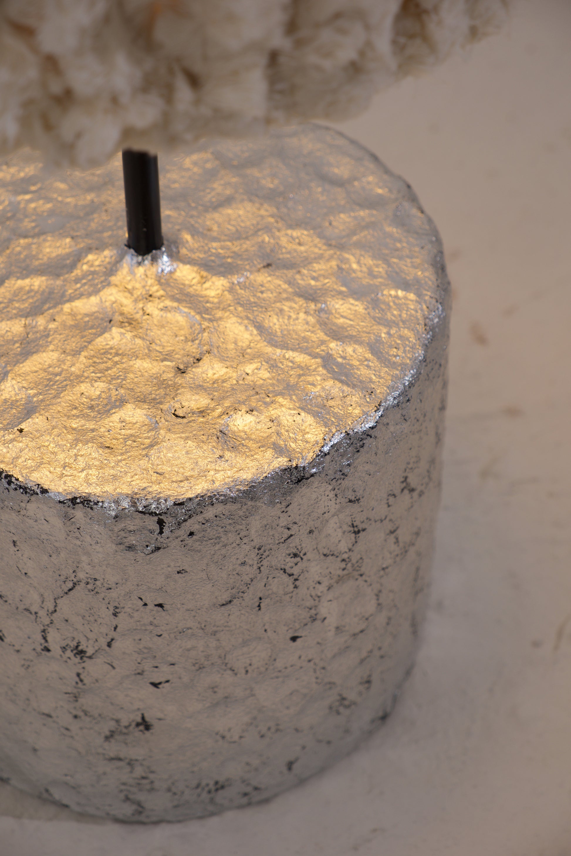 Основа виконана на міцному кленовому осерді та покрита Pleto Biocomposite — авторським матеріалом PletoStudio, створеним із глини, конопляних волокон, целюлози, дерев’яної стружки, мінеральних компонентів та екологічного звʼязувального клею. Срібне покриття має живу, багатошарову текстуру з легким металічним переливом, що по-різному читається залежно від освітлення та кута огляду, надаючи обʼєкту скульптурної глибини.